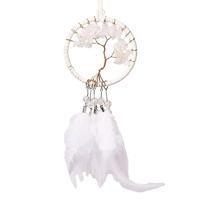 Tämä kaunis unisieppari on koristeltu valkoisella jaspiksella – kivellä, joka on perinteisesti yhdistetty rauhallisuuteen, suojeluun ja sisäiseen selkeyteen. Olitpa kiinnostunut kivien symboliikasta tai vain kauniista yksityiskohdista, tämä unisieppari lumoaa kauneudellaan. Ihana lahjaidea!